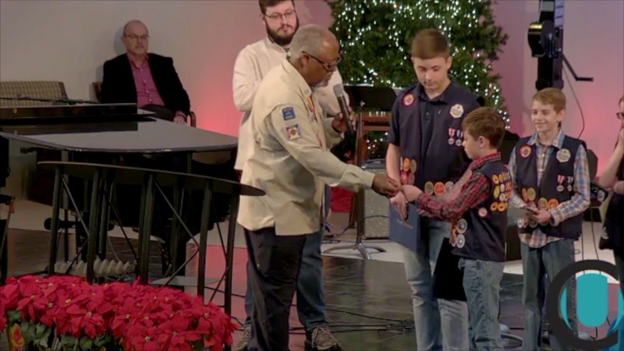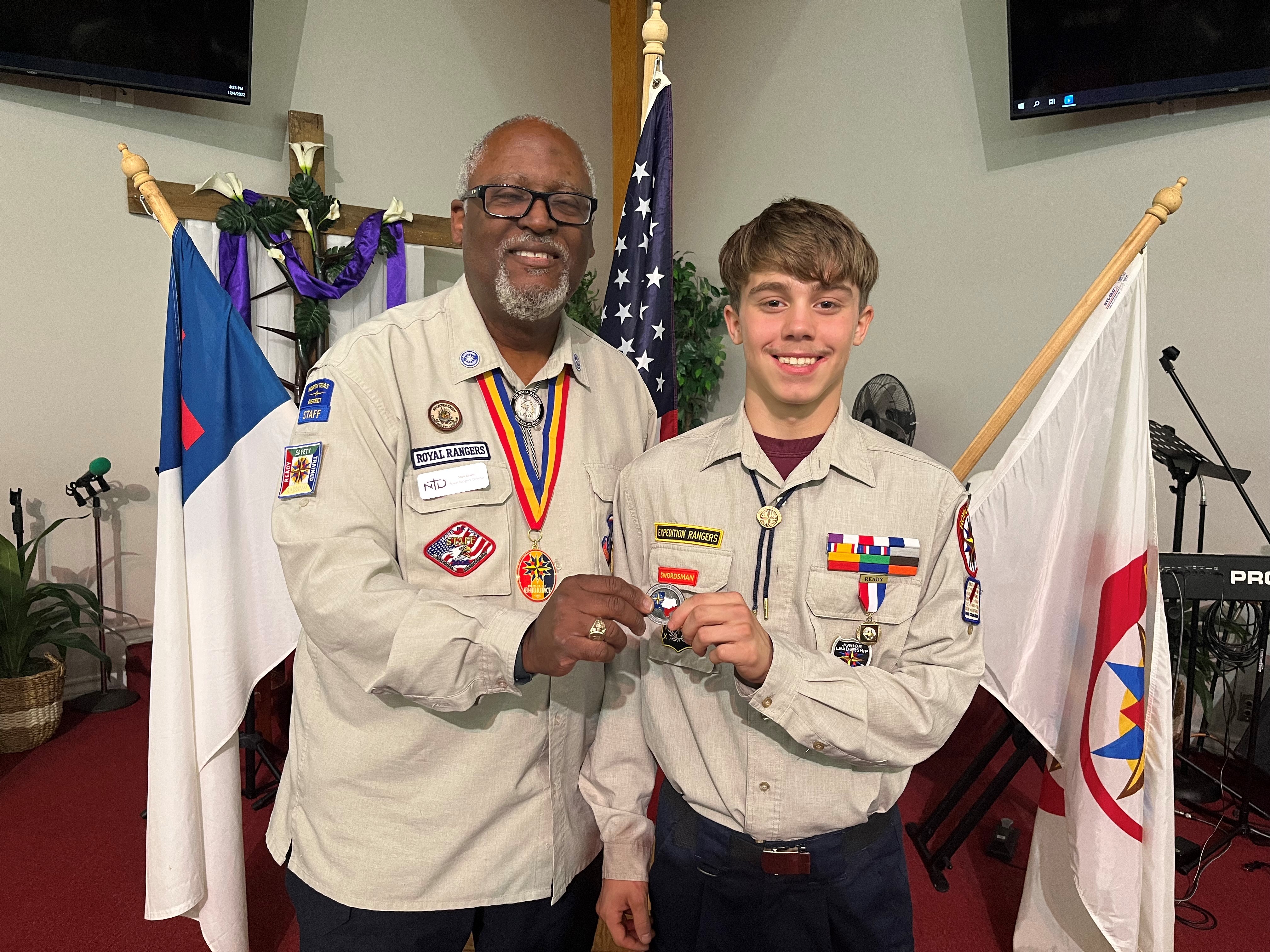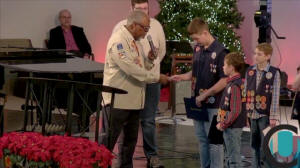 For earning his Gold Eagle (University Church, Waxahachie) |